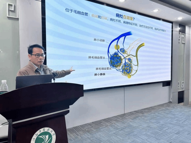 报告中,何伟教授围绕肺动脉高压等重大疾病的临床治疗需求,从现有药物干预的局限性出发,系统阐述了其团队在流体行为调控的药物递送系统设计、肺血管靶向治疗策略及新型共晶药物制剂开发等领域的创新研究成果。