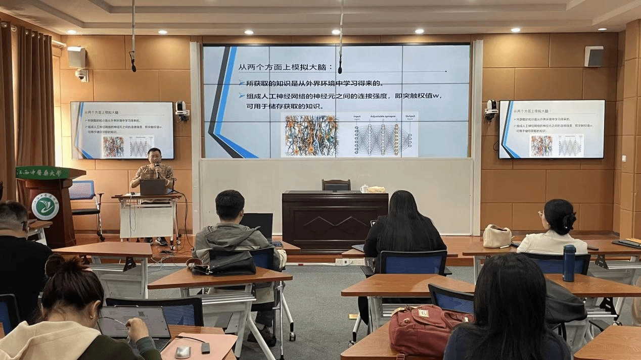 专题培训紧扣科研人员实际需求,特邀火山引擎资深培训专家帅伯成围绕智能体基础原理、构建方法、典型应用场景及未来发展趋势展开系统讲解。学校智能医学与信息工程学院熊旺平教授结合应用场景,从底层架构到技术选型,帮助教师理解智能体的核心机制,分享了大模型驱动的智能体在科研数据处理、文献挖掘、项目管理、临床合理用药、新药研发等多场景中的实际应用案例,帮助参训人员构建了“技术原理—场景应用”的完整认知体系。